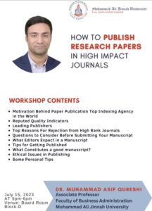 I conducted a workshop on “How to Publish Research Papers in High Impact Factor Journals” at Mohammad Ali Jinnah Univeristy, Karchi.