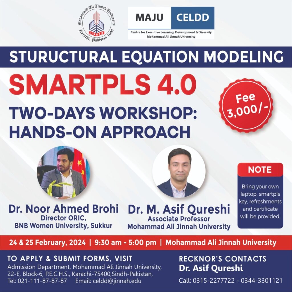 Dr. Muhammad Asif Qureshi conducted a two-day workshop on SEM using Smart PLS 4.0 at Mohammad Ali Jinnah University.