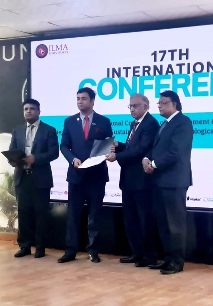 Dr. Muhammad Asif Qureshi had the honor of being invited as a Session Chair at the 17th International Conference of Management & Social Sciences, held at ILMA University. The Conference theme was “Strategies for Achieving Sustainable Success: Technological Innovations for Business and Economics.”